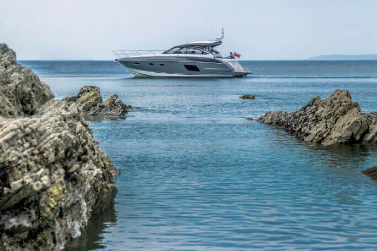 † Fart och räckvidd är uppskattade på en båt med standardutrustning och varierar beroende på skrovets renhet, akterdrevets skick, last, vatten- och lufttemperaturer, sjöförhållanden och andra faktorer. Uppskattningar ges därför i god tro men utan garanti eller några förpliktelser oss oss eller Princess Yachts International plc.