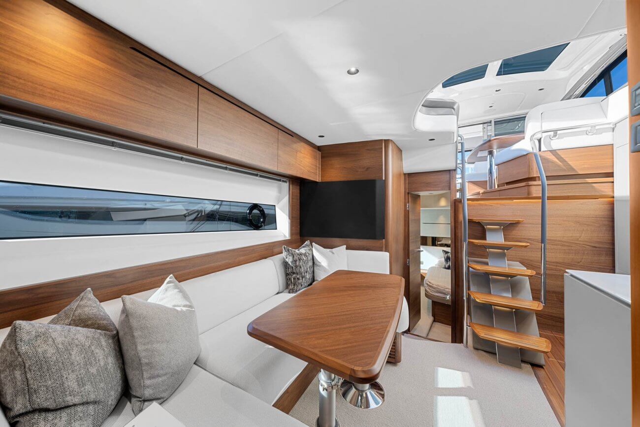 • Upholstered aft U-shaped & forward L-shaped seating/dining area (optional seat infill)