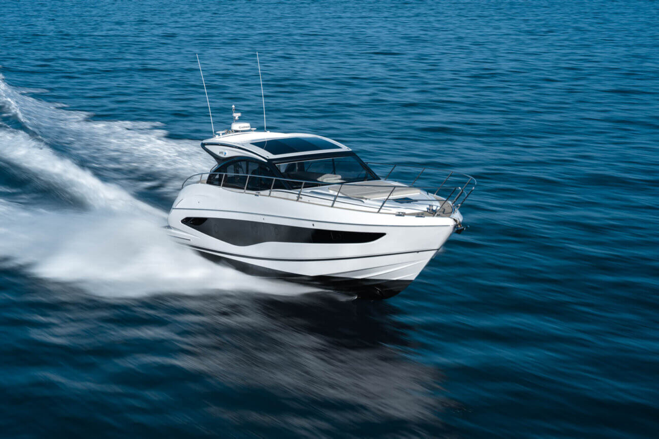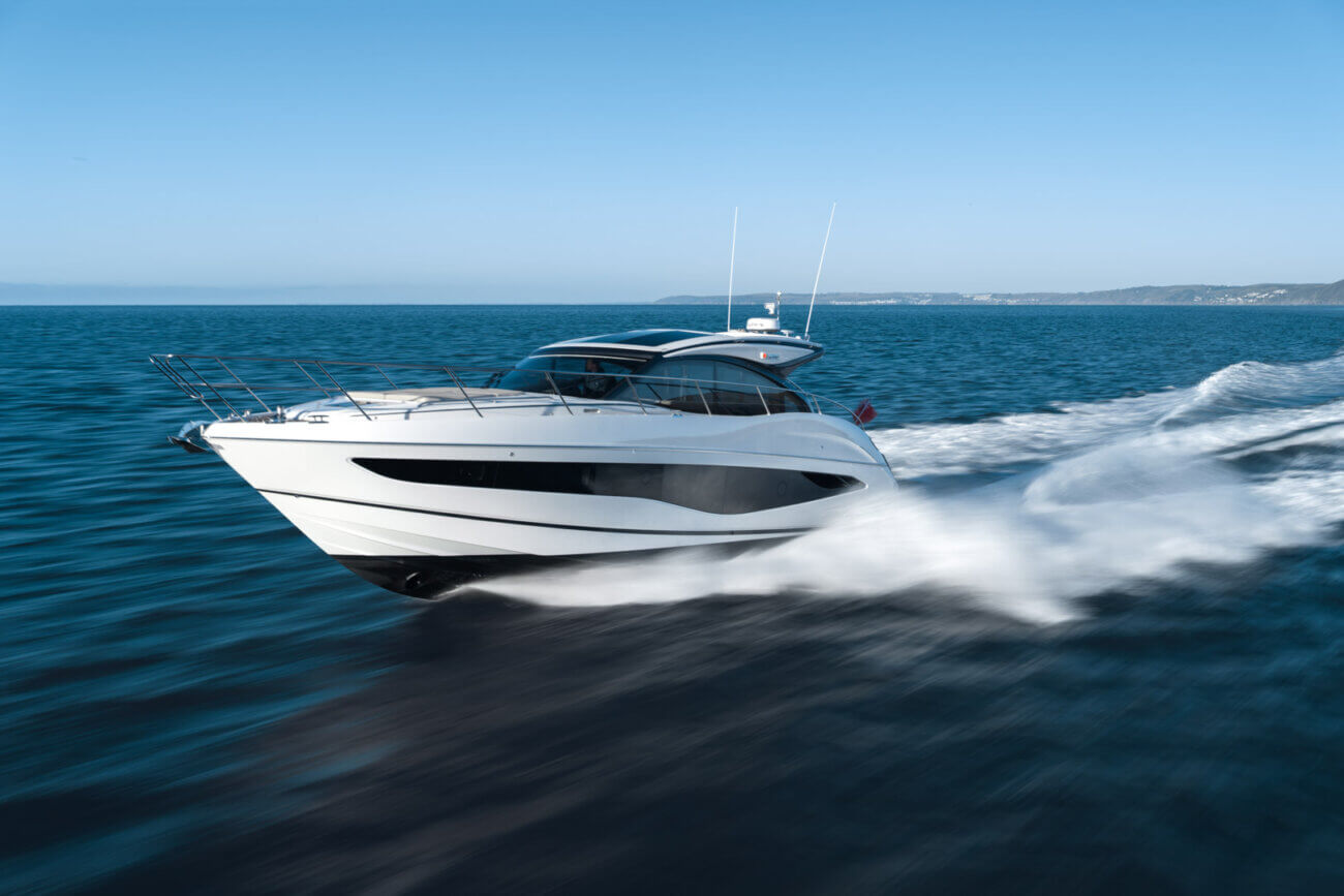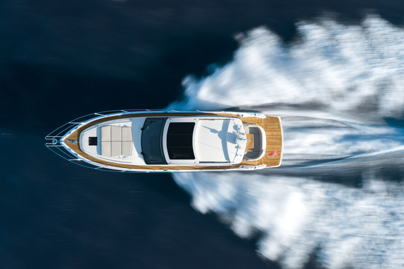 Vid underhållning ger den utökade sittbrunnen exceptionellt utomhuslivsutrymme där man kan skapa oförglömliga upplevelser. Under däck ligger ett ljust, modernt öppet kök mittemot ett sällskapligt underhållande utrymme. Fyra till sex gäster kan njuta av två eller tre vackert inredda hytter som är fyllda med naturligt ljus från den omfattande skrovglasningen, med en masterkabin midskepps i hela båtens bredd.