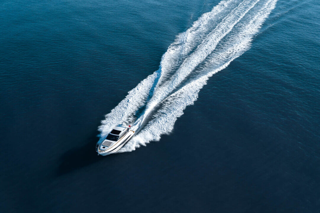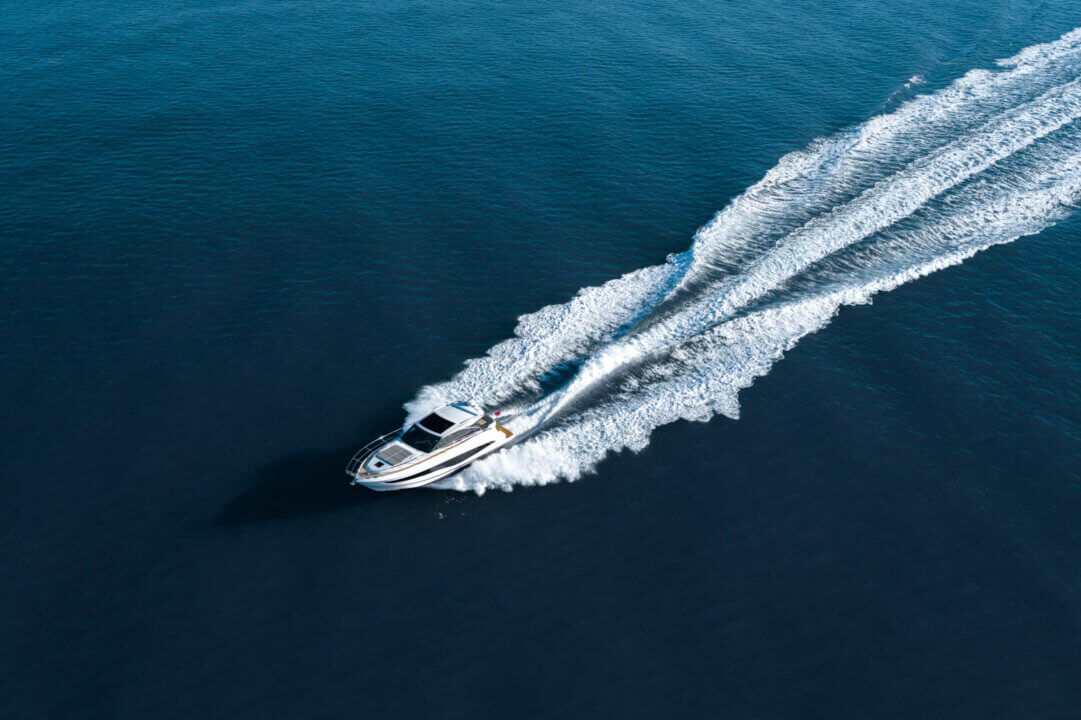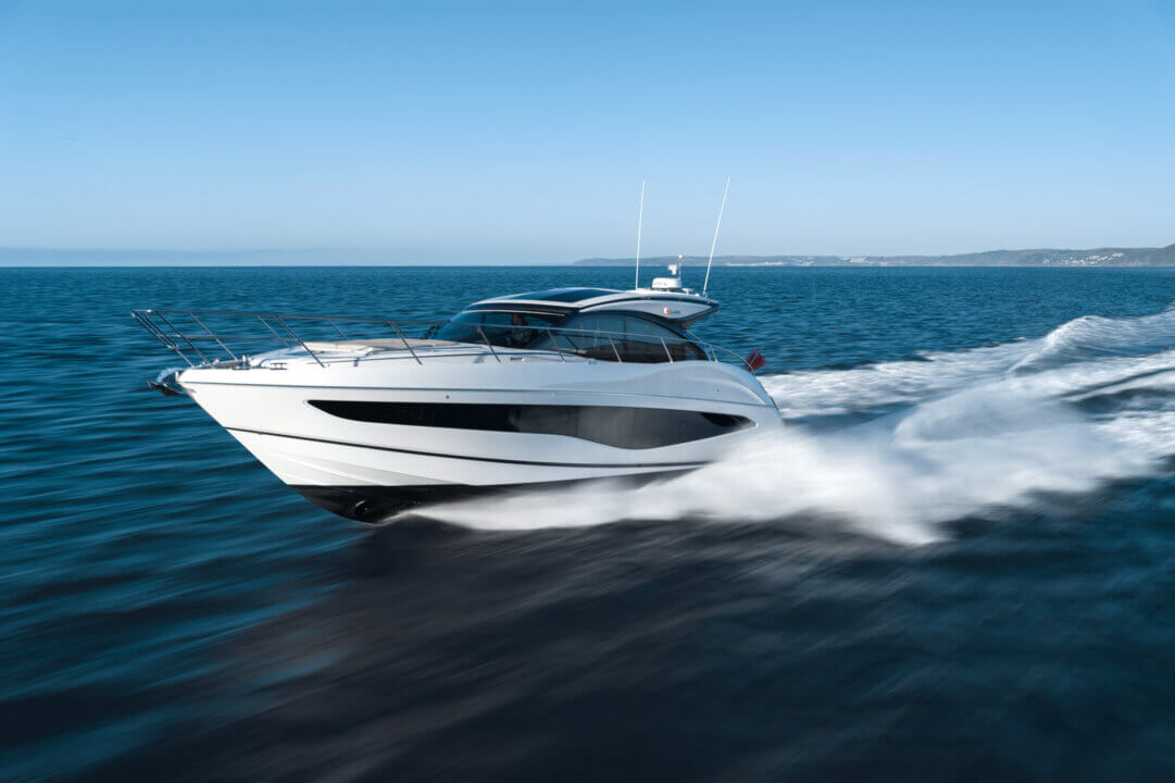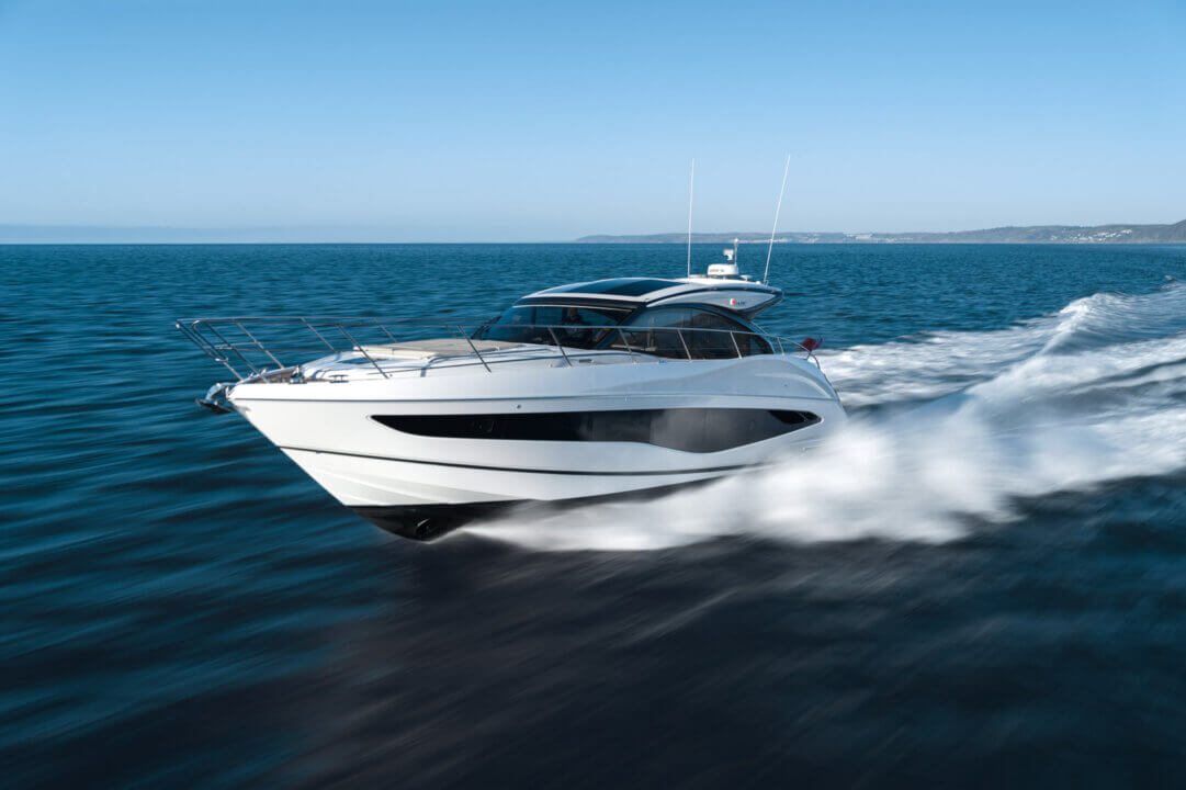 † Fart och räckvidd är uppskattade på en båt med standardutrustning och varierar beroende på skrovets renhet, akterdrevets skick, last, vatten- och lufttemperaturer, sjöförhållanden och andra faktorer. Uppskattningar ges därför i god tro men utan garanti eller några förpliktelser oss oss eller Princess Yachts Limited.