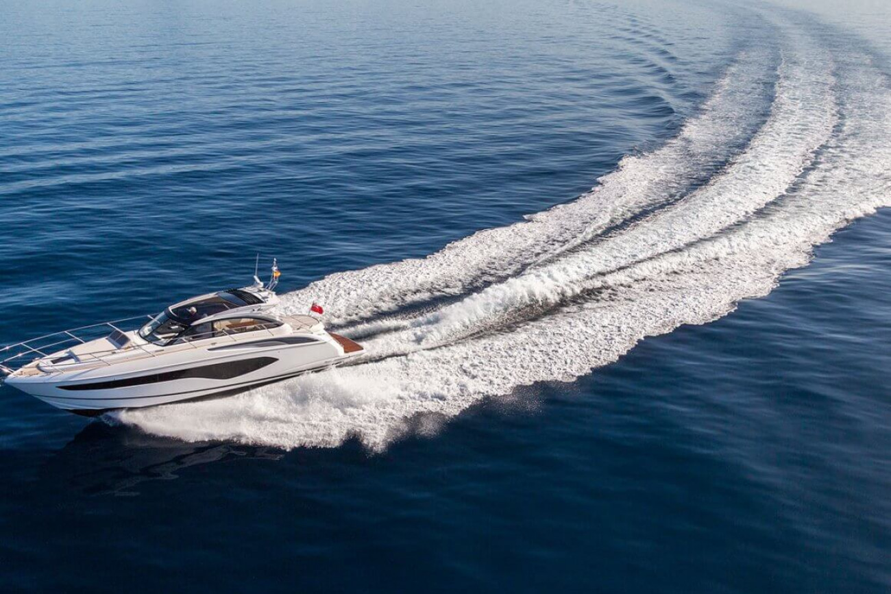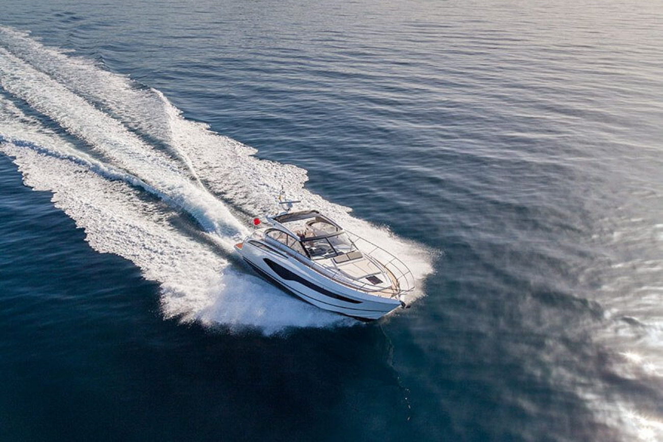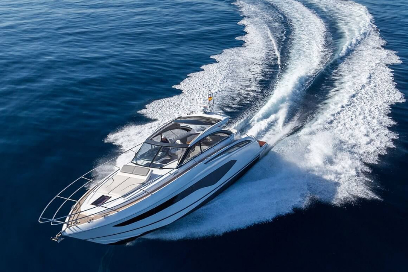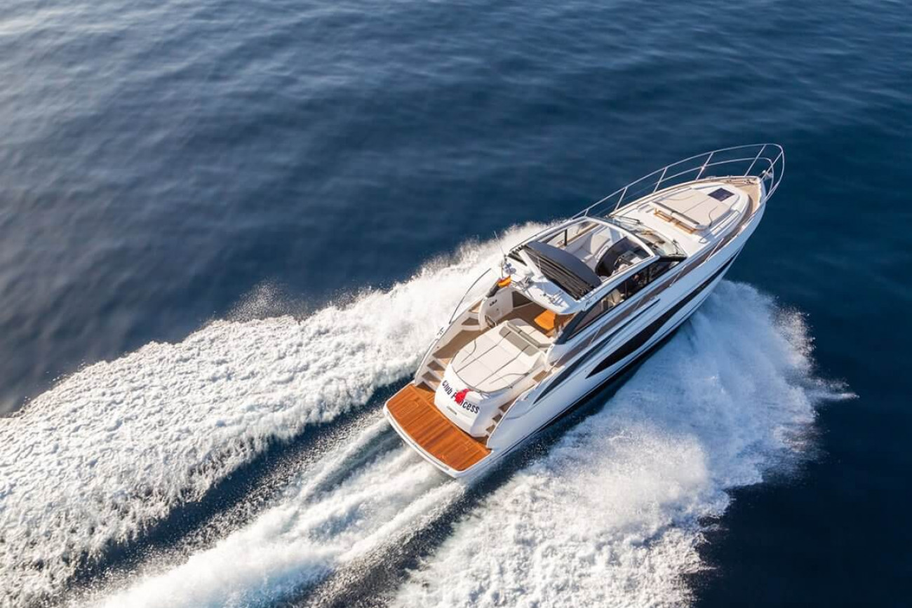 † Fart och räckvidd är uppskattade på en båt med standardutrustning och varierar beroende på skrovets renhet, akterdrevets skick, last, vatten- och lufttemperaturer, sjöförhållanden och andra faktorer. Uppskattningar ges därför i god tro men utan garanti eller några förpliktelser oss oss eller Princess Yachts Limited.