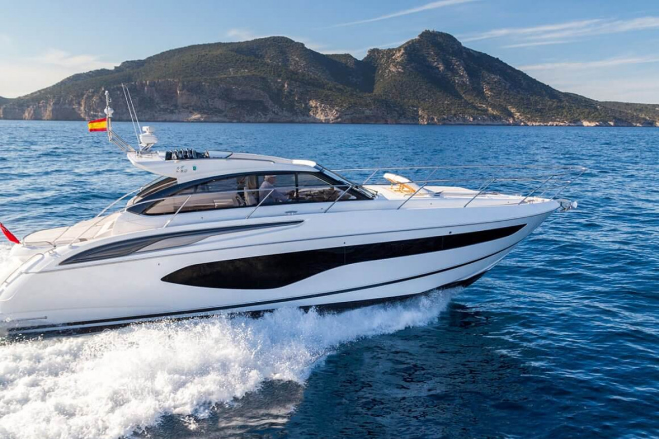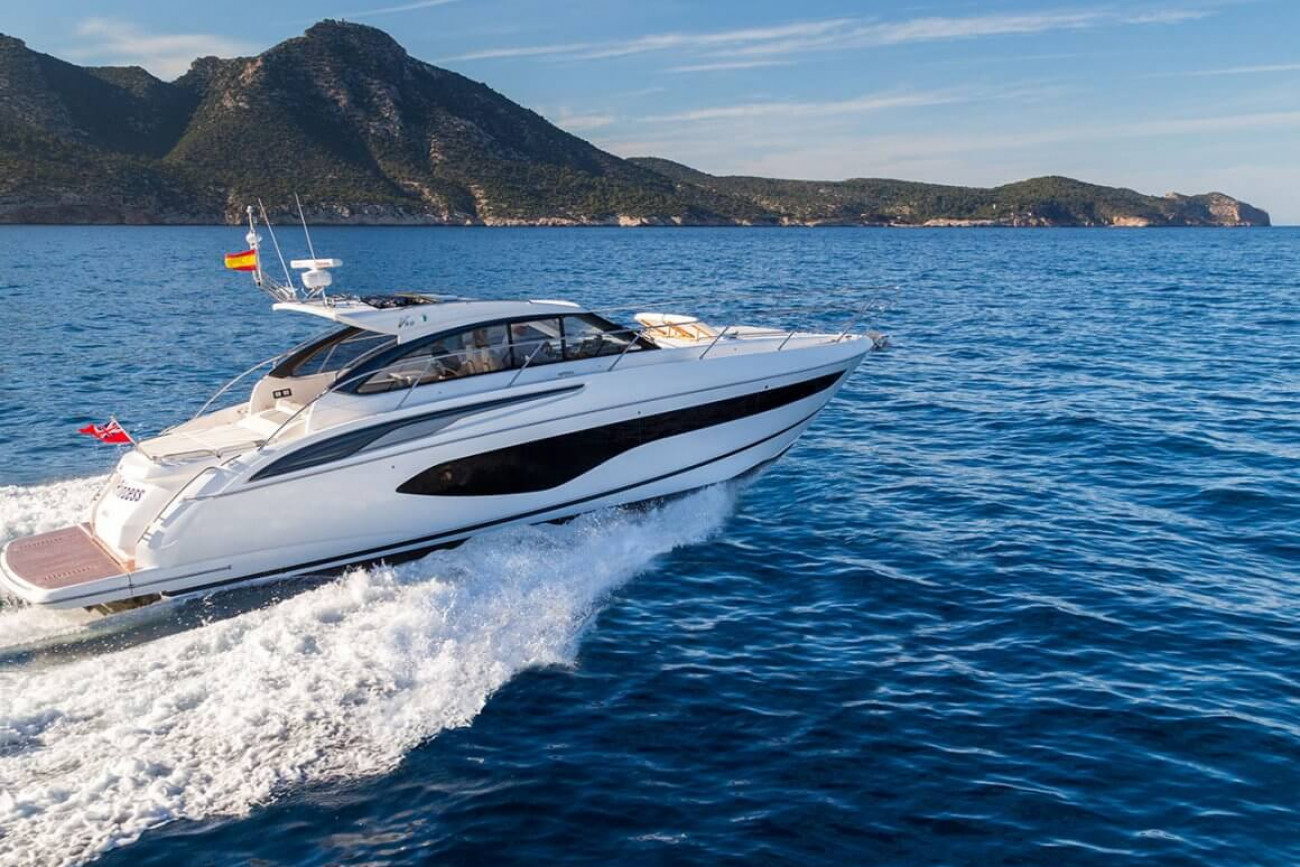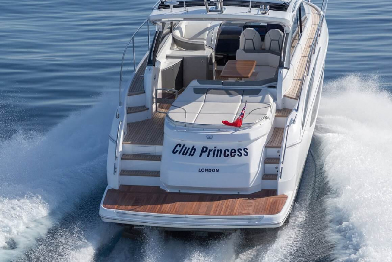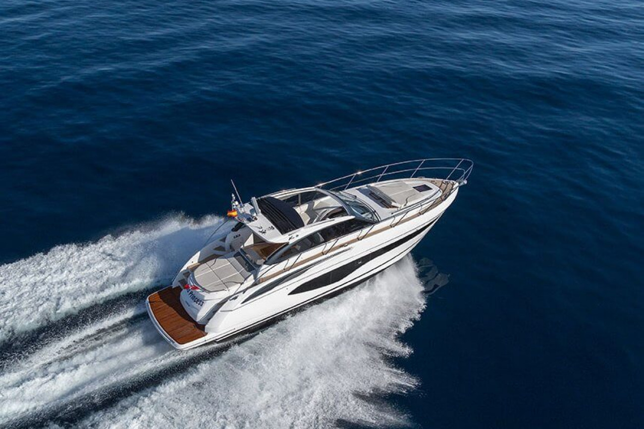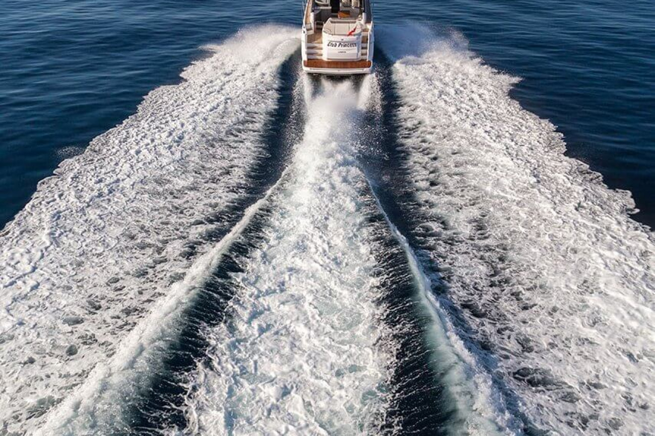 † Fart och räckvidd är uppskattade på en båt med standardutrustning och varierar beroende på skrovets renhet, akterdrevets skick, last, vatten- och lufttemperaturer, sjöförhållanden och andra faktorer. Uppskattningar ges därför i god tro men utan garanti eller några förpliktelser oss oss eller Princess Yachts Limited.