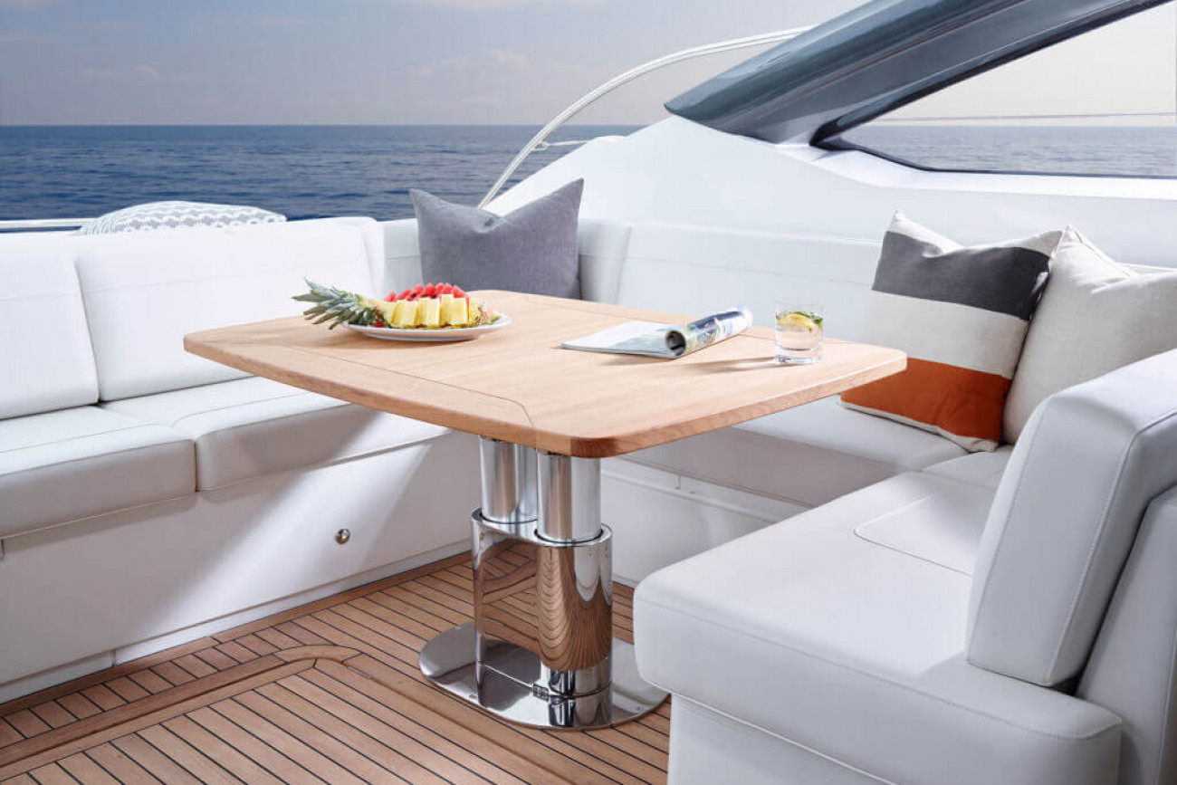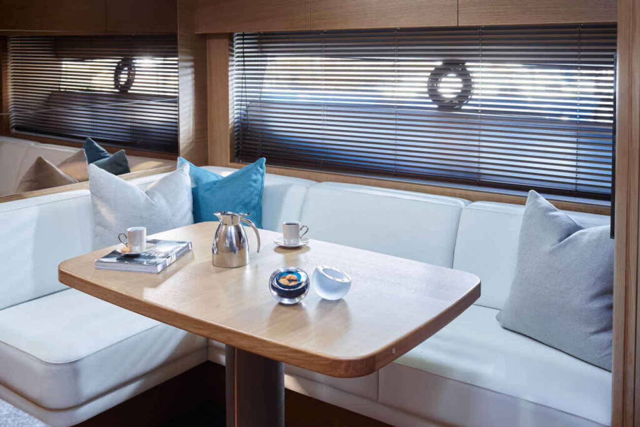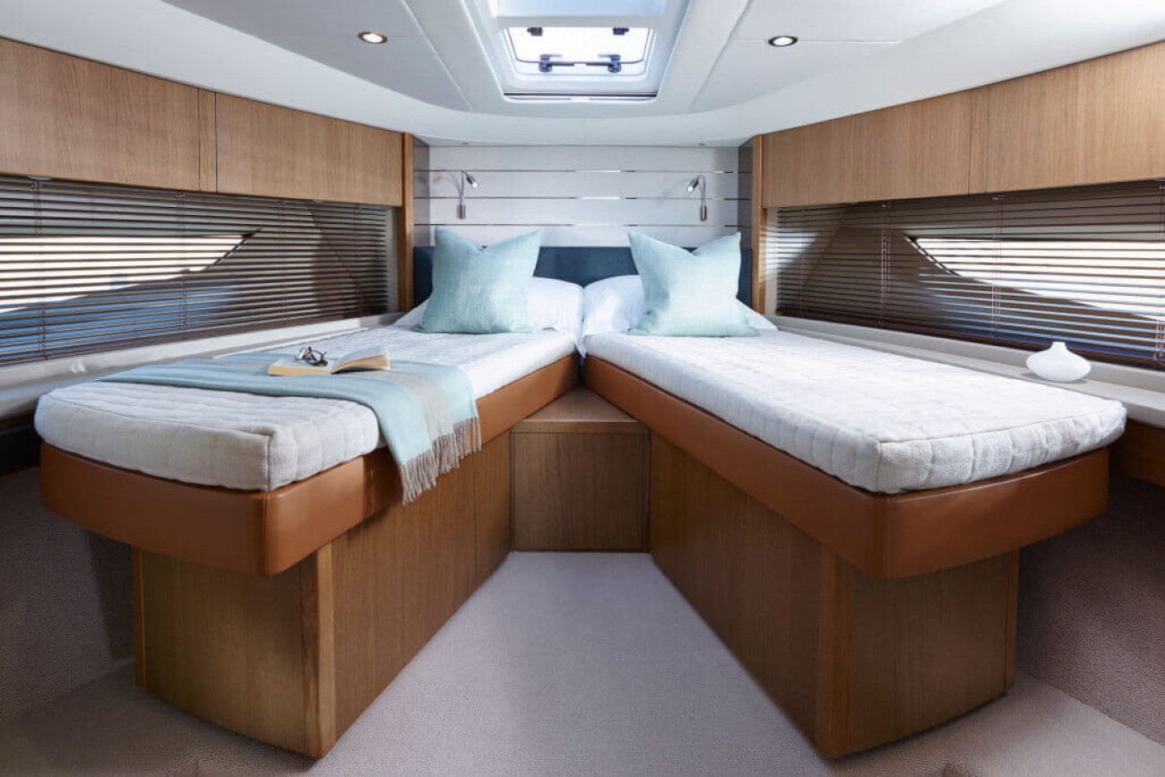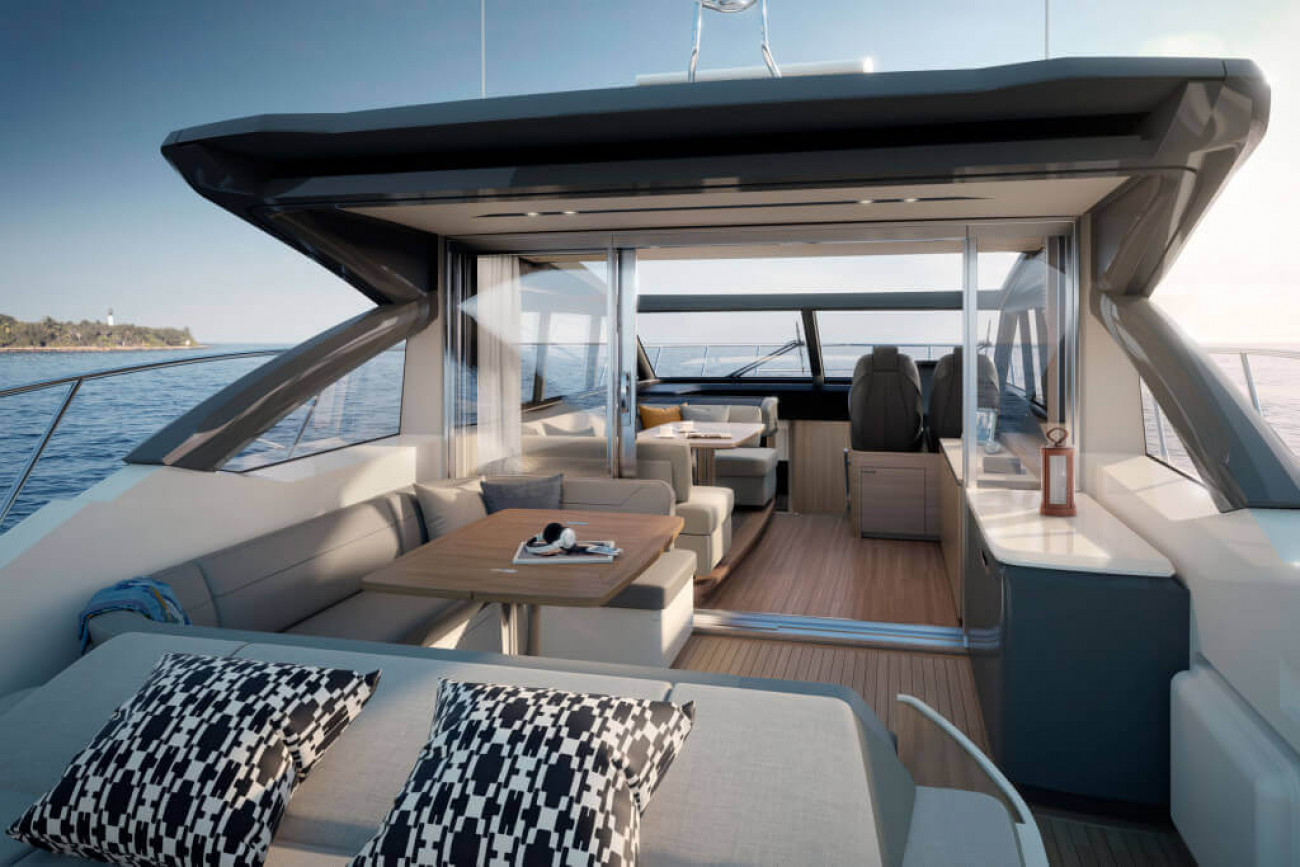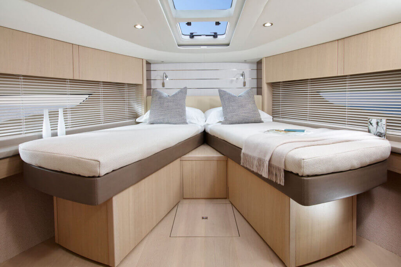 Det senaste tillskottet till modellprogrammet V Class, är den dynamiska nya V58, om finns i två versioner – Öppen eller Däcksalong. Den öppna modellen med en fullängdssittbrunn med stort elektriskt öppningsbart kapelltak är perfekt för sommardagar, medan den flexibla slutna däckssalongsmodellen kan kylas med klimatanläggning eller öppnas via trippel skjutdörr och taklucka. De stora, dynamiska skrovfönstren släpper in ljuset i de vackert inredda boendeutrymmena. Med tre gästhytter, två av som åtnjuter ett eget badrum, och möjligheten att välja till en extra hytt akterut – är hon ett helt enastående fartyg.