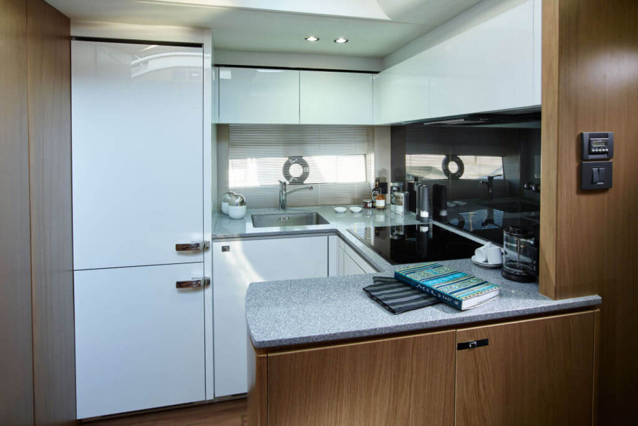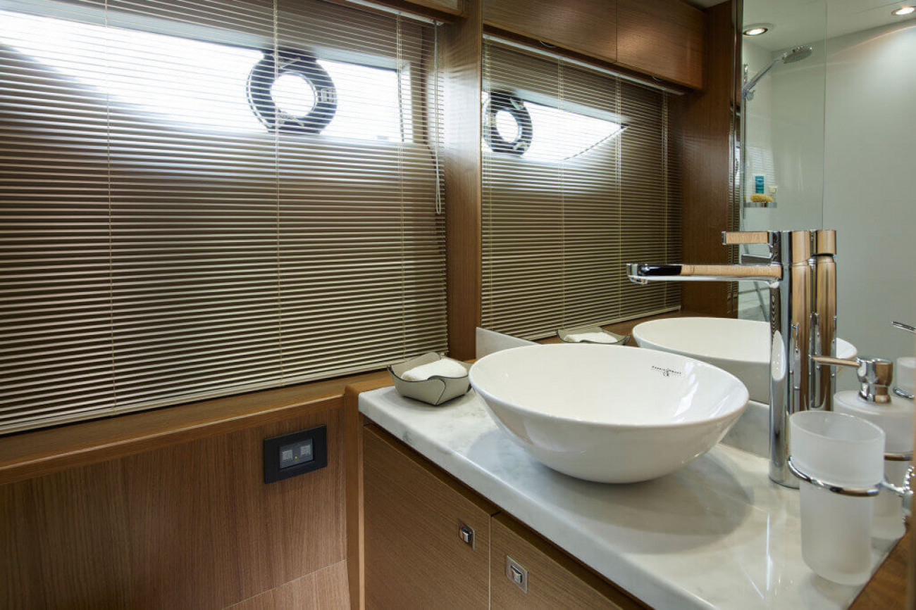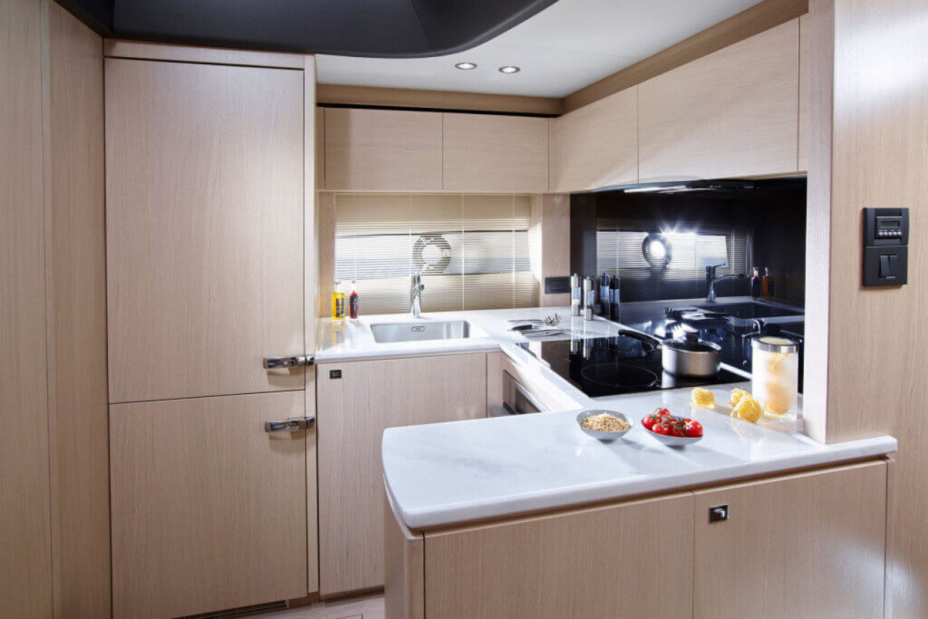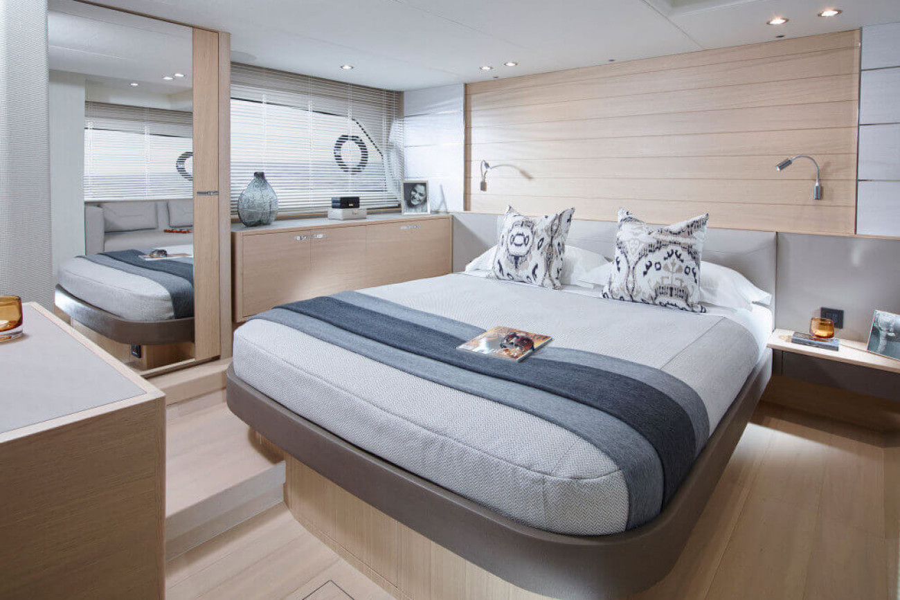 Det senaste tillskottet till modellprogrammet V Class, är den dynamiska nya V58, om finns i två versioner – Öppen eller Däcksalong. Den öppna modellen med en fullängdssittbrunn med stort elektriskt öppningsbart kapelltak är perfekt för sommardagar, medan den flexibla slutna däckssalongsmodellen kan kylas med klimatanläggning eller öppnas via trippel skjutdörr och taklucka. De stora, dynamiska skrovfönstren släpper in ljuset i de vackert inredda boendeutrymmena. Med tre gästhytter, två av som åtnjuter ett eget badrum, och möjligheten att välja till en extra hytt akterut – är hon ett helt enastående fartyg.