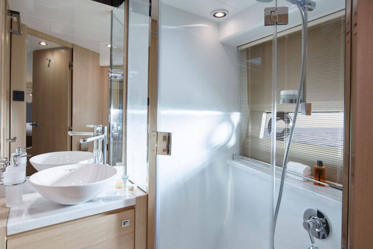 • All bathrooms feature full shower stalls, electric freshwater toilets, extractor fan and 240v shaver points