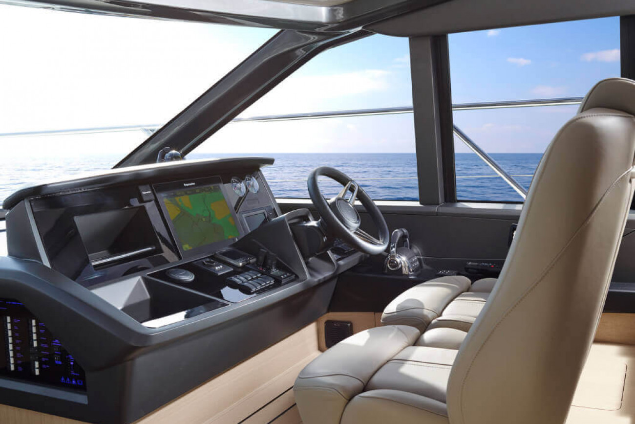• Navigation system including colour radar, GPS and chartplotter, VHF/RT, speed and distance log, echo sounder with alarm, autopilot and high speed magnetic compass