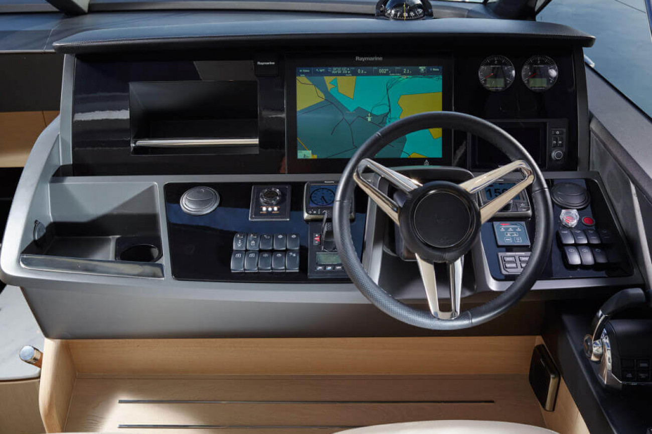 • Controls for bow thruster, windscreen wipers, bilge pump, anchor winch and trim tabs (with indicator)