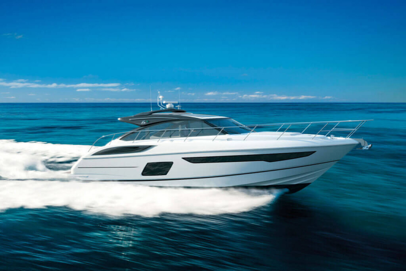† Fart och räckvidd är uppskattade på en båt med standardutrustning och varierar beroende på skrovets renhet, akterdrevets skick, last, vatten- och lufttemperaturer, sjöförhållanden och andra faktorer. Uppskattningar ges därför i god tro men utan garanti eller några förpliktelser oss oss eller Princess Yachts International plc.