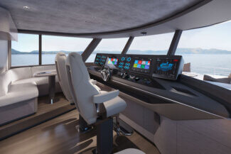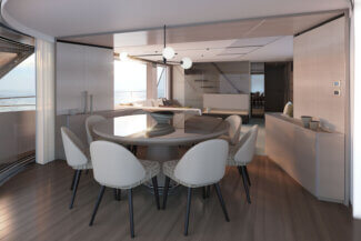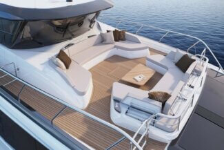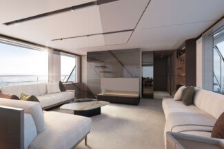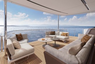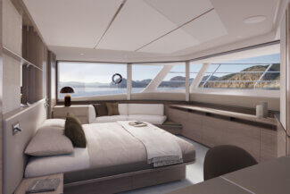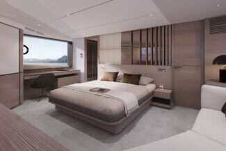 Ägarens svit erbjuder en fristad för avkoppling med panoramautsikt och privat tillgång till fördäcksterrassen. Det öppna huvuddäcket förstärker känslan av rymd och frihet mellan salong och cockpit.