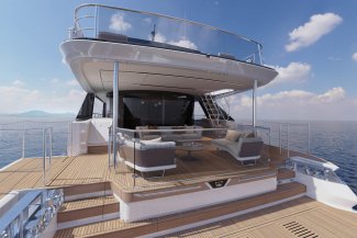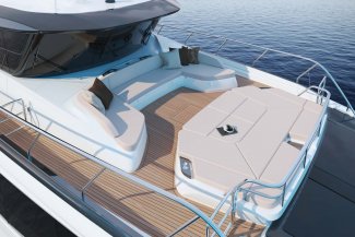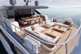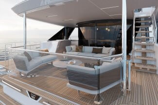 Flybridgen med Skylounge ger ett lyxigt utrymme för sociala tillställningar, vilket gör X90 till en ny standard inom lyxiga yachter.