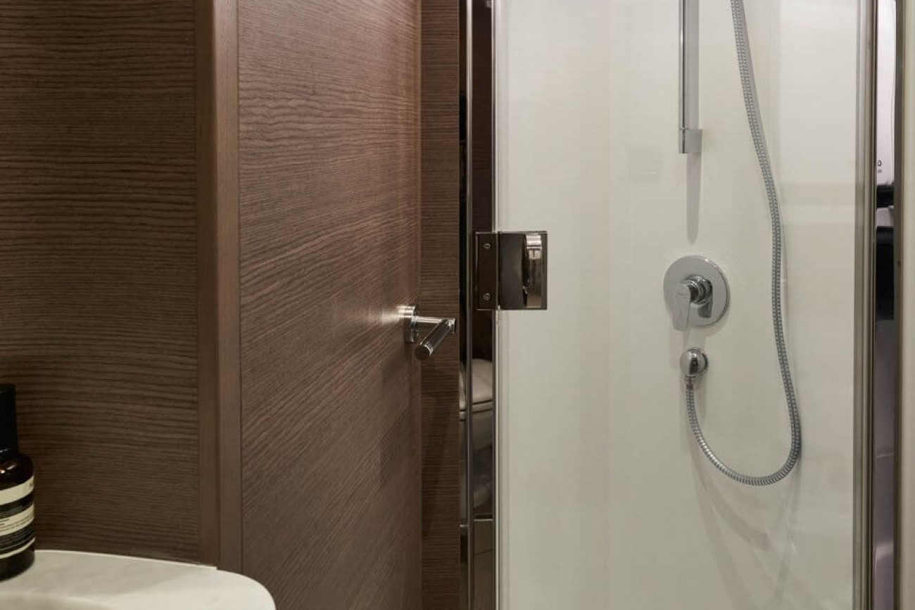 • Electric quiet flush WC system with 88 gallons/106 US gallons/400 litres holding tank, content gauge and low noise electric overboard discharge, with macerator backup system as well as dockside discharge system