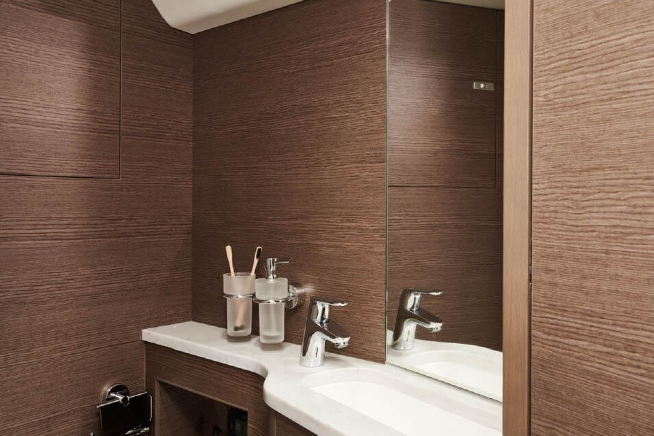 • Crew cabin has timber flooring, crew bathroom floor is Solid Surface with Solid Surface countertops