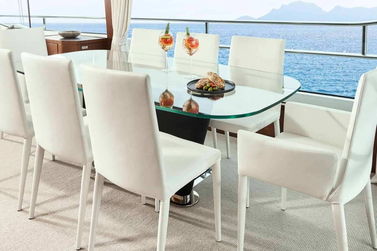 • Electrically operated sliding glass partition from aft saloon
