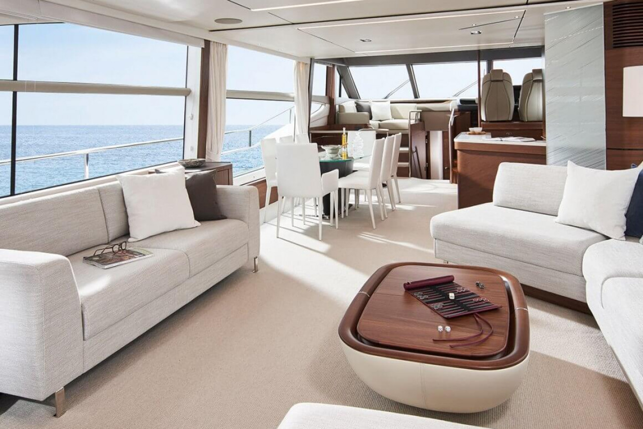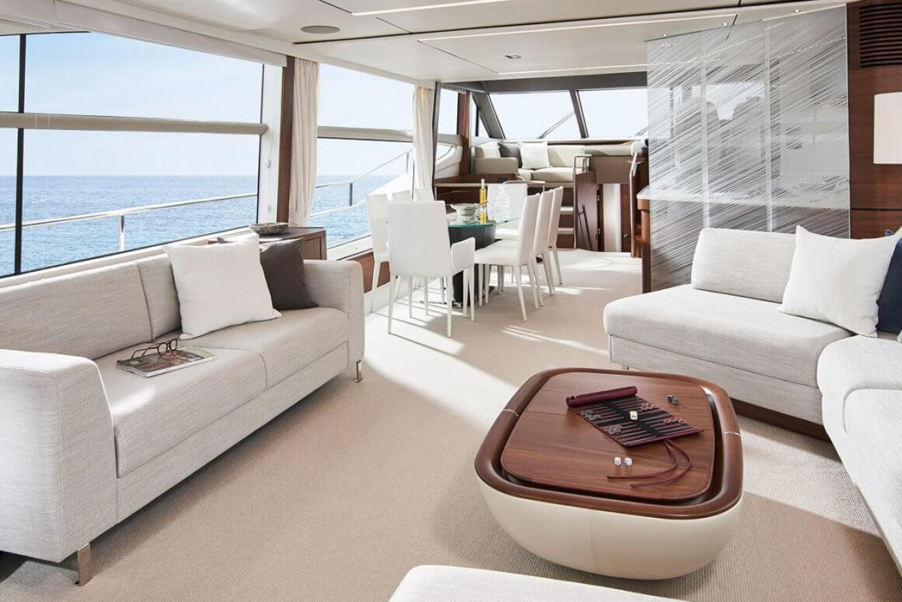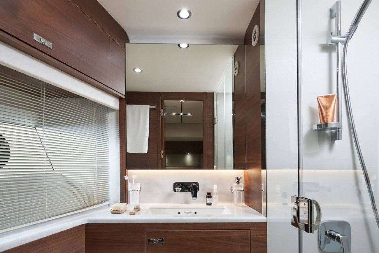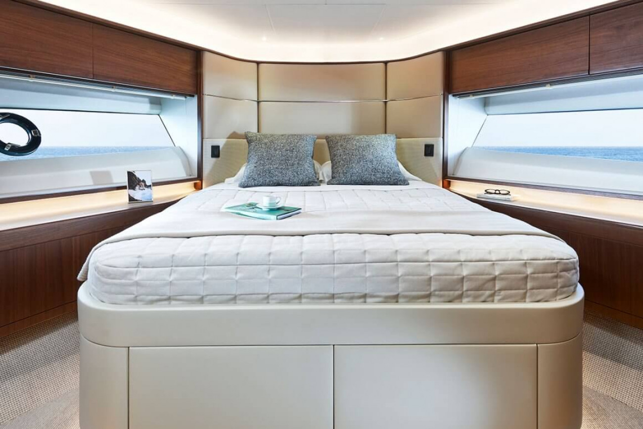 Nya Y78 har Princess allra senaste design, interiör och materialval. Hennes flexibla däcklayout har ett genomgående fördäck med U-formad sittplats och solbädd och flybridge har plats för fristående möbler eller en lyftkran för gummibåt. Naturligt ljus strömmar in i salongen genom stora fönster, varav ett i full höjd vid matbordet som gör den till en spektakulär plats för underhållning. På nedre däck är alla tre gästhytter utrustade med badrum. Masterkabinen midskepps nås via egen nedgångstrappa.