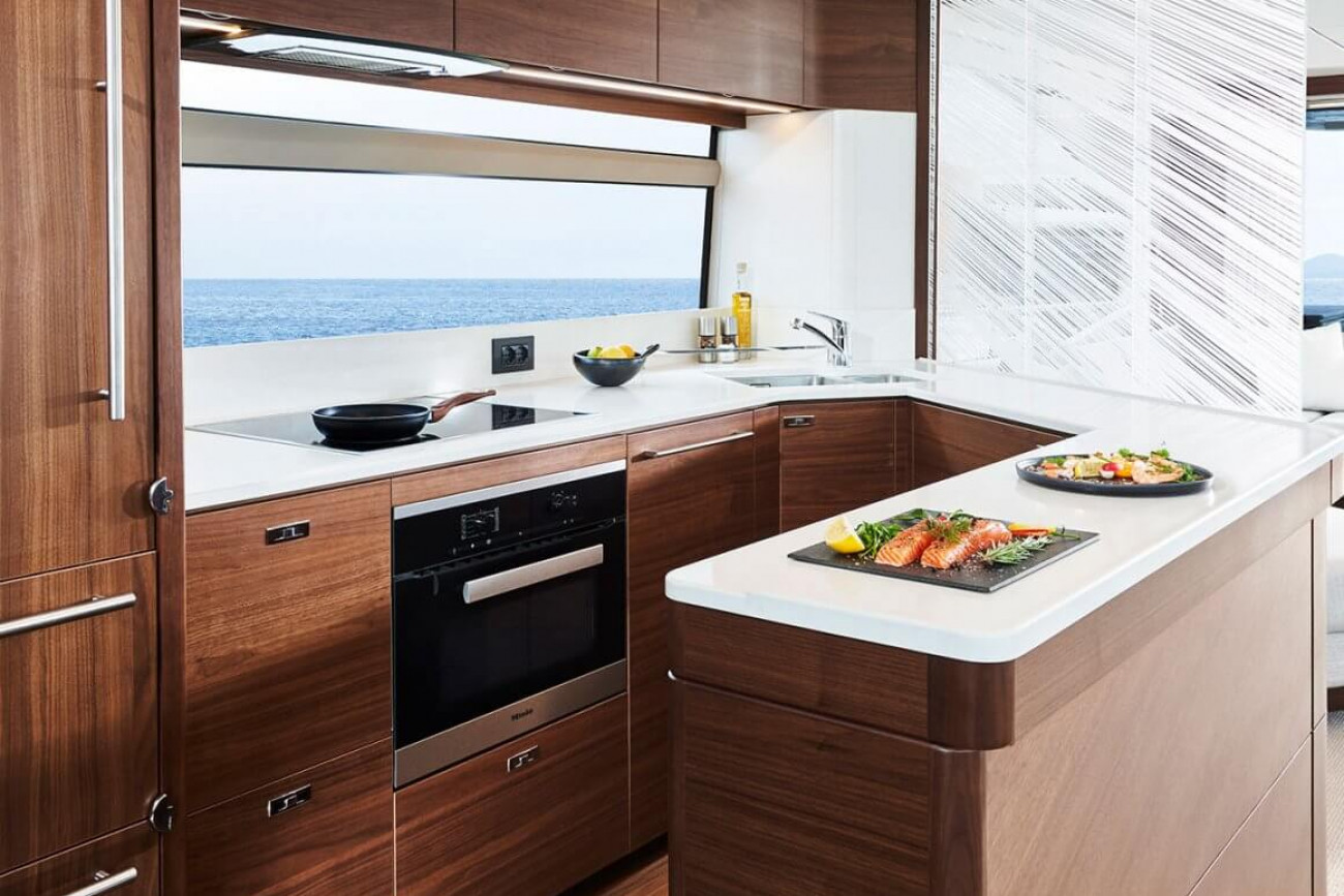 • Timber-laid galley and helm floors