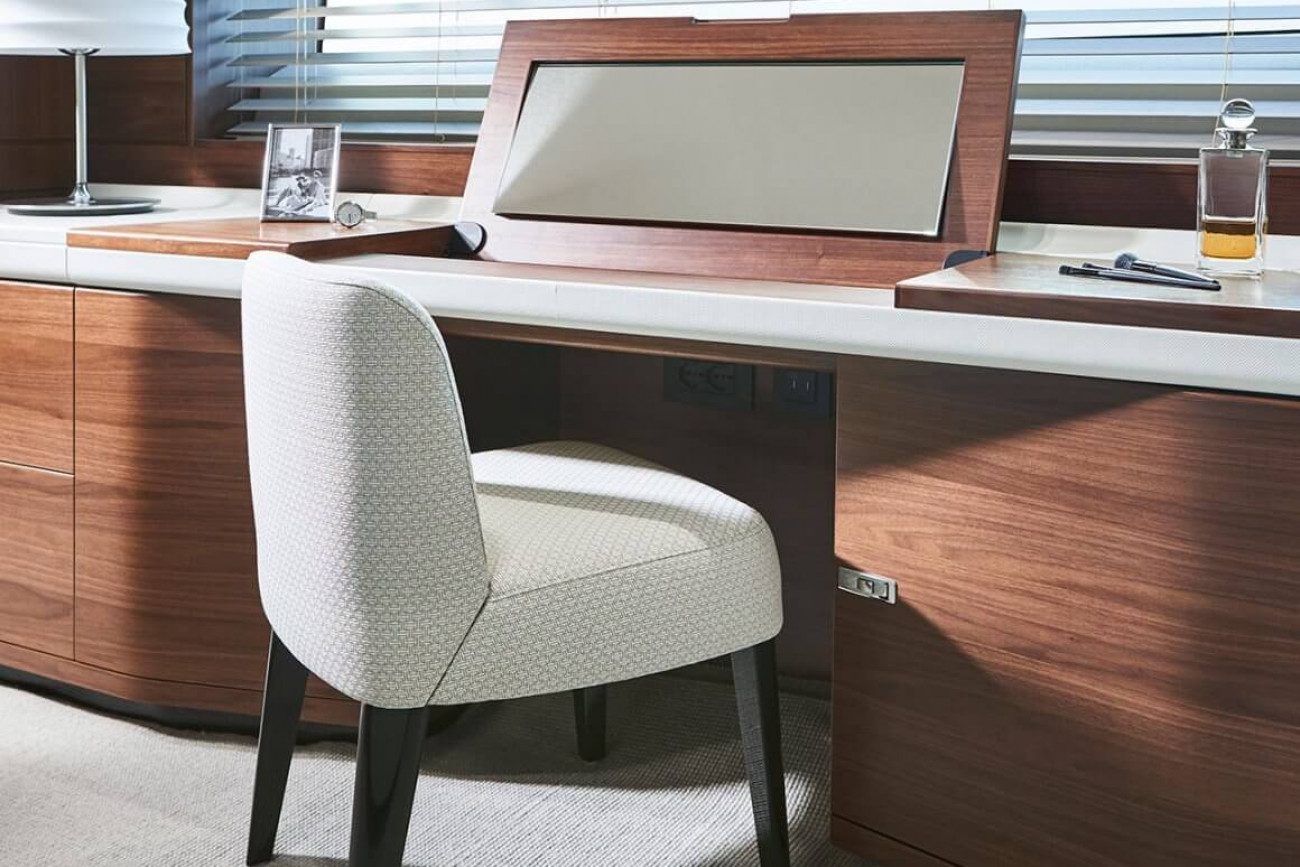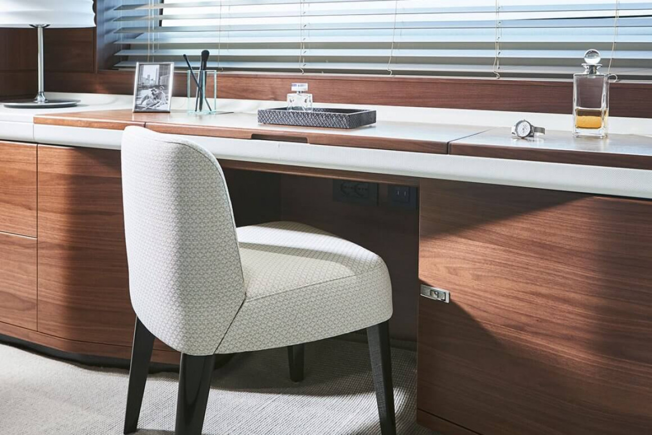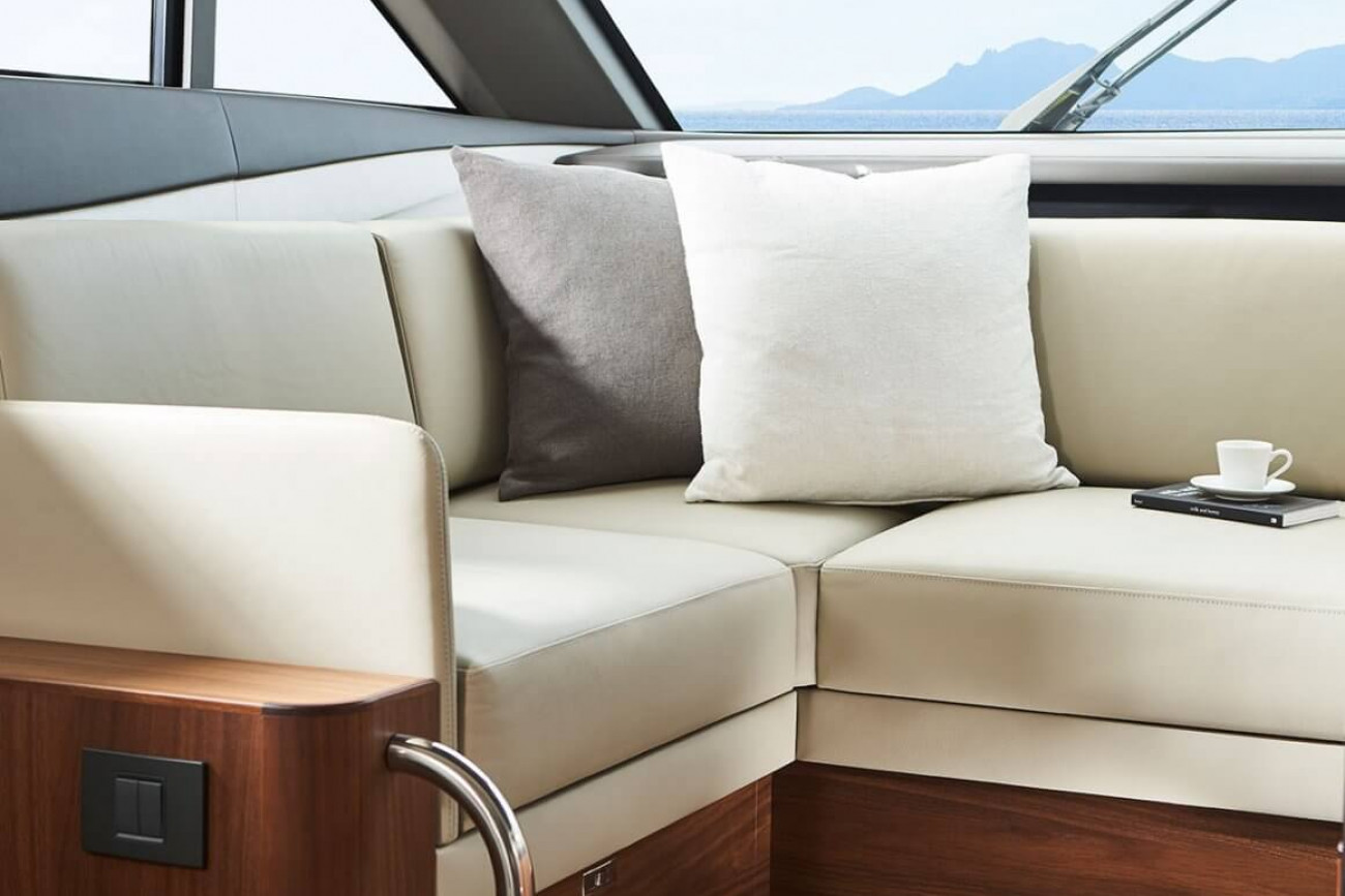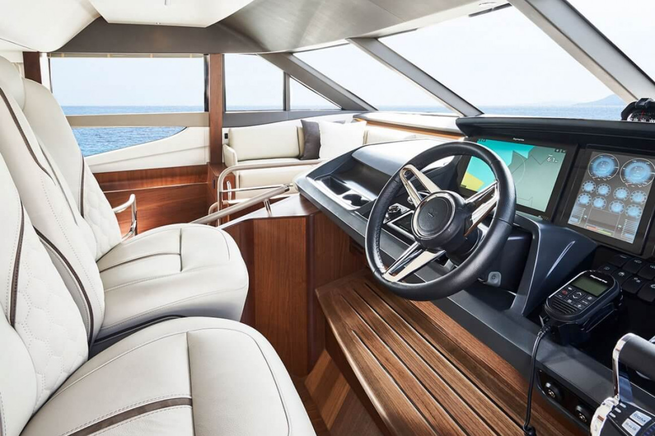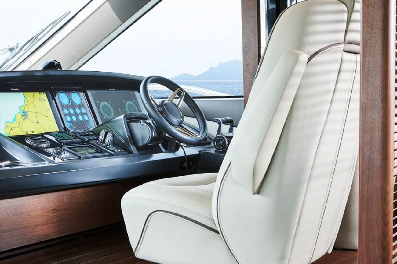 • Twin helm seats with electric fore and aft adjustment for helmsman