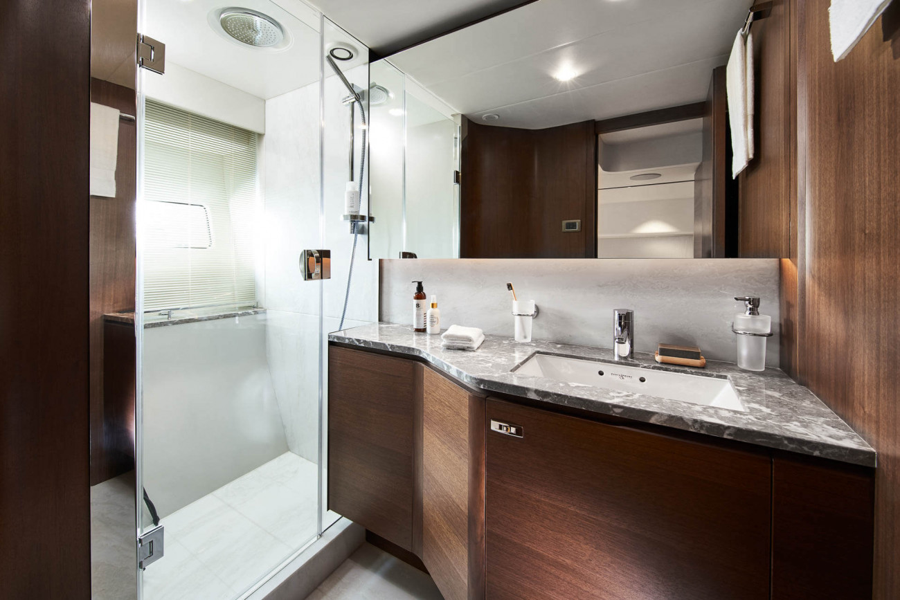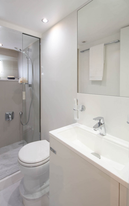 • Bathroom with separate stall shower, electric freshwater toilet and washbasin