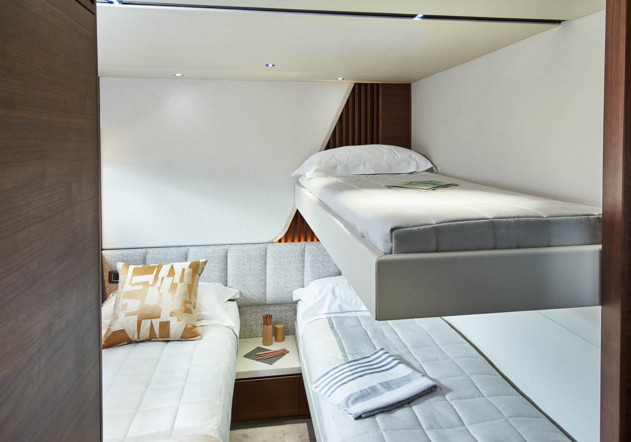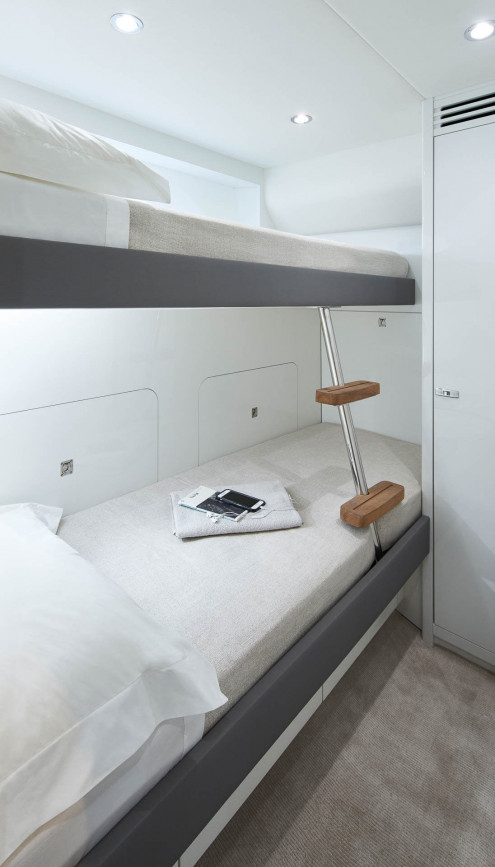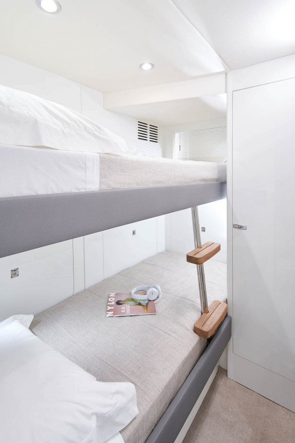 • Crew cabin with two single beds, wardrobe and storage lockers