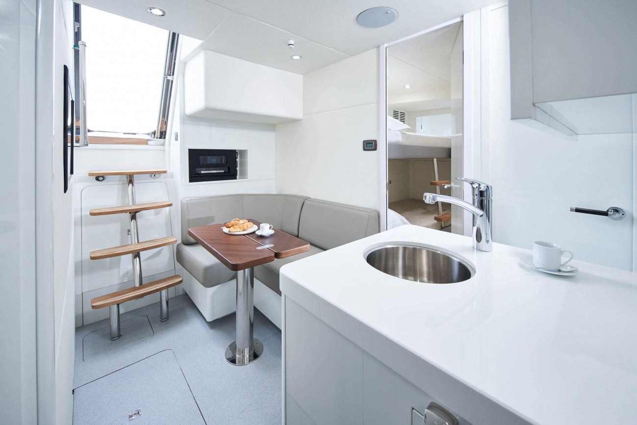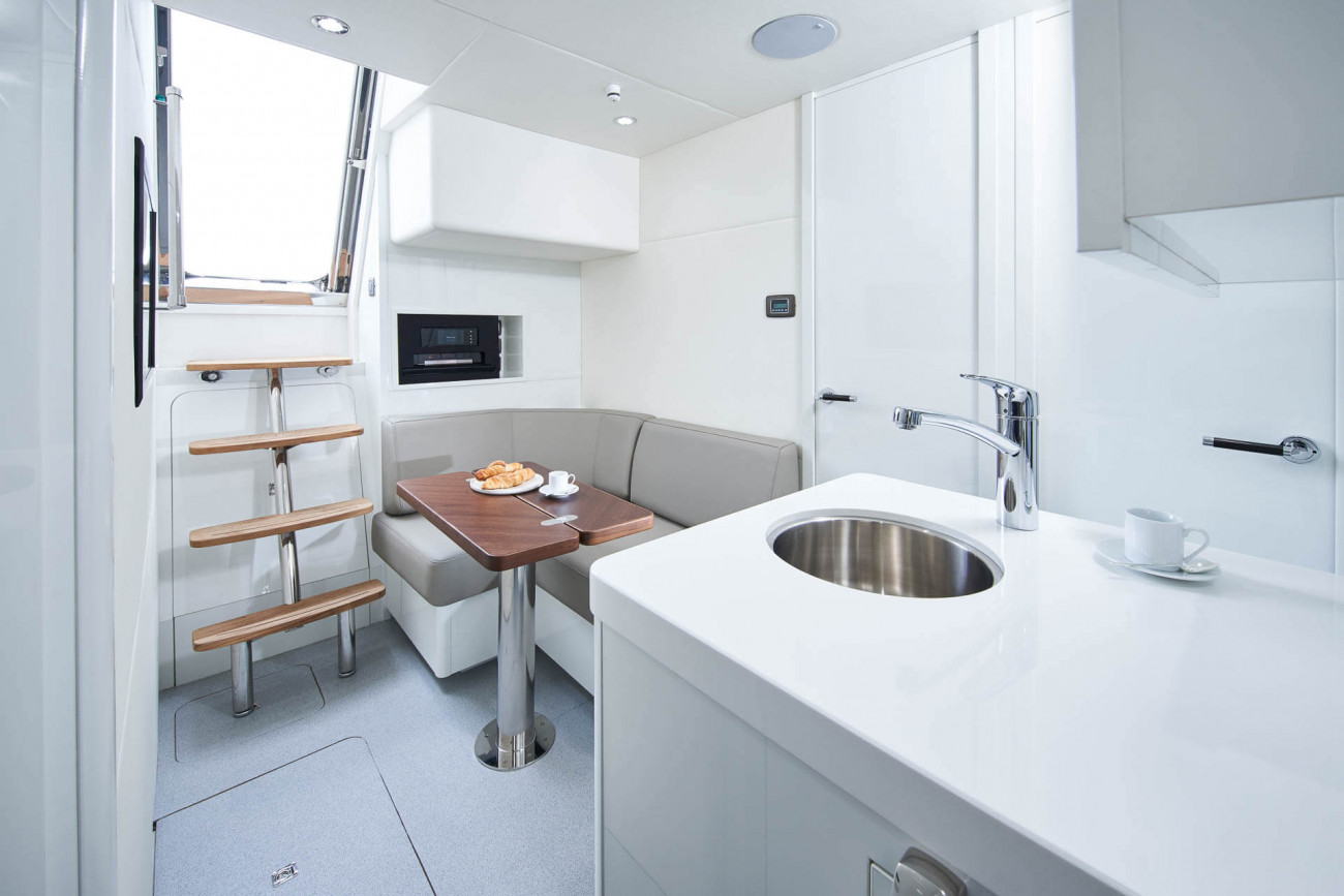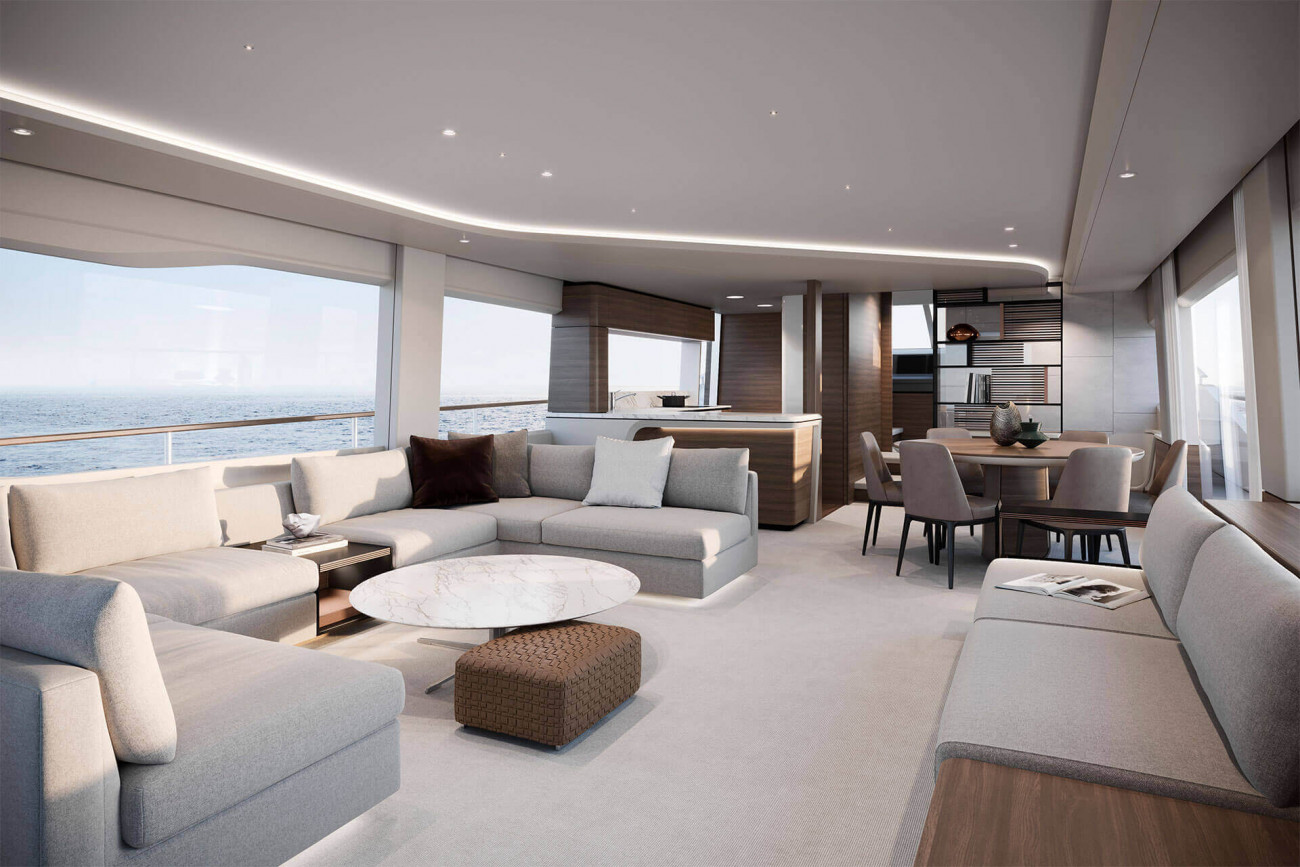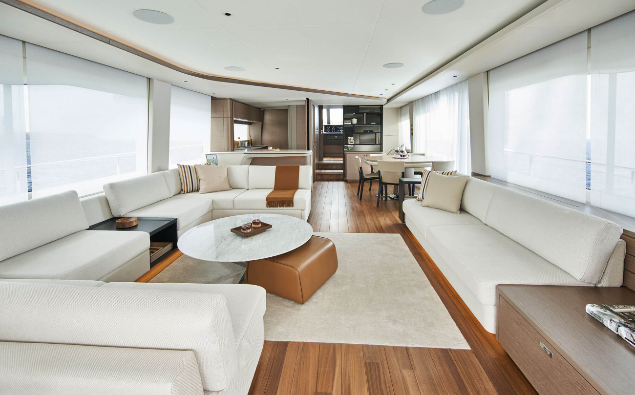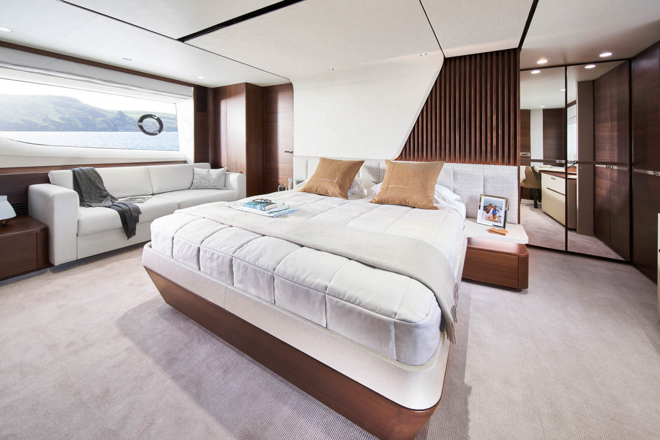 Helt nya Y85 är en triumf för modern design. Hennes eleganta svepande profil rymmer en inre fristad som skriver om normen för modernt boende. Hennes flybridge inbjuder till en oemotståndlig utomhusunderhållning med en stor matplats, mittemot en välutrustad wetbar som kompletteras med en rymlig solbädd akterut. Med dubbla MAN V12-motorer som driver henne till en toppfart på 33 knop, flyger hon förbi sina motståndare utan att se tillbaka. Ett expansivt huvuddäck på ett plan ger gott om underhållande utrymme med ett flexibelt pentryarrangemang. Tre separata sittområden garanterar största möjliga integritet för gäster med besättningen att röra sig diskret omkring i båten. Under däck ryms upp till åtta gäster i fyra vackert inredda kabiner med eget badrum. Midskepps är masterkabin i fullhöjd en förespråkare för rymlig design, medan VIP-kabinen förut har en stor dubbelsäng och klädkammare. Hennes rymliga boende kompletteras dessutom av en dubbel och en tvåbäddskabin (omvandlingsbar till en dubbel). Det går inte att ta miste, helt nya Y85 är utan tvivel Princess.