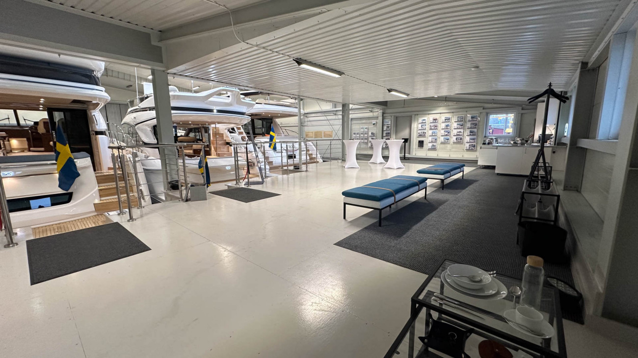 Välkommen till vårt öppna showroom på Vindön, vackert beläget 10 mil norr om Göteborg och 9 mil söder om Strömstad. Här ställer vi under vintersäsongen ut fem nya Princess-båtar, inklusive modeller som V50 Open, V50 Deck Saloon, V40 och F55. Dessutom visar vi upp ett urval av förstklassiga begagnade premiumbåtar till salu.
